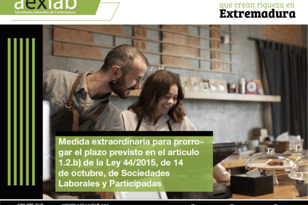 Aexlab propone medidas económicas para las Sociedades Laborales a la Junta de Extremadura. Desde AEXLAB, planteamos hace varias semanas, a la Consejería de Agricultura, Desarrollo Rural, Población y Territorio de la Junta de Extremadura un paquete de medidas económicas con el objetivo de aminorar los efectos de la crisis sanitaria en el tejido empresarial y en la actividad económica de nuestra región. En este contexto, nuestro objetivo principal es aportar soluciones y ayudar a nuestra región en este momento de…