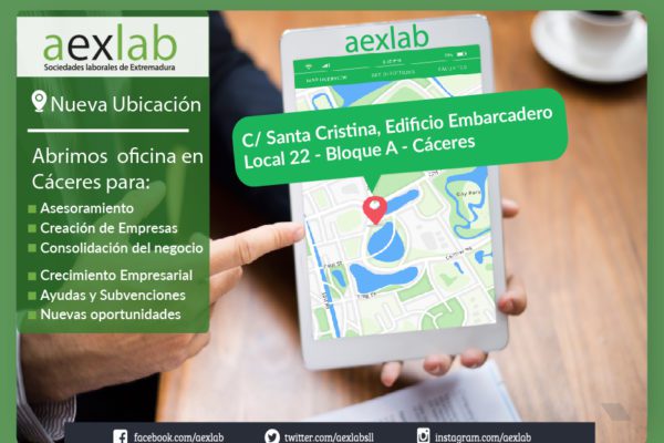 Después de casi un año de que nuestra creación como la Asociación Extremeña de Sociedades Laborales y Participadas de Extremadura, abrimos sede en la ciudad de Cáceres. Ahora, además de en nuestra sede de Badajoz, nos podras encontrar en Cáceres en el Edificio Embarcadero, local 22 – bloque A. Seguiremos dando asesoramiento a todos los emprendedores que quieran abrir su propio negocio con la forma jurídica de las Sociedades Laborales, así como atender y satisfacer las necesidades de nuestras asociadas.…