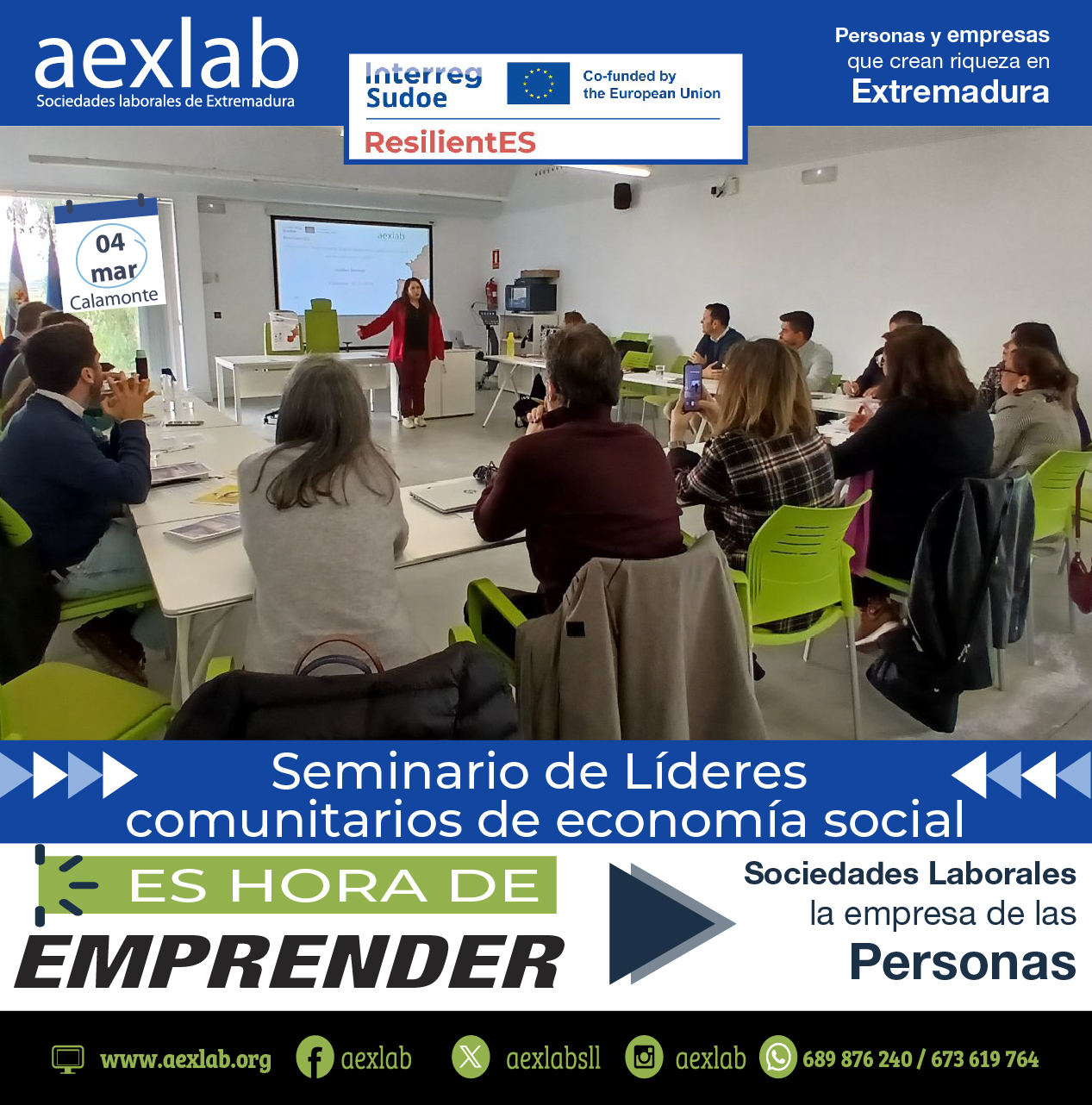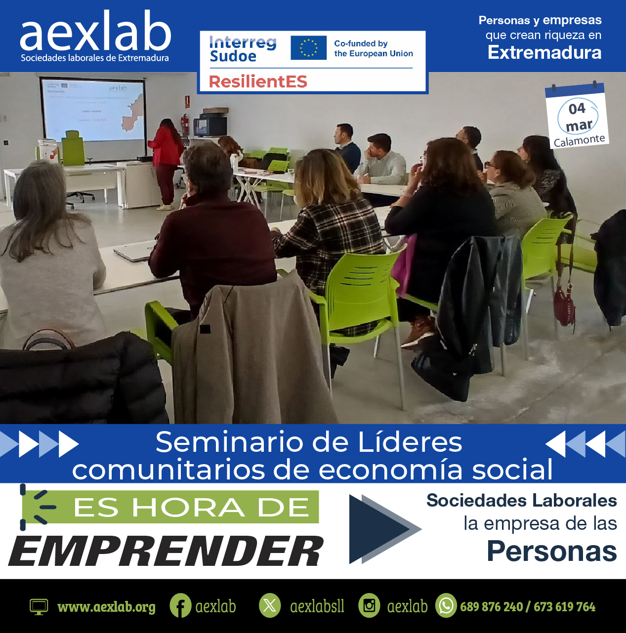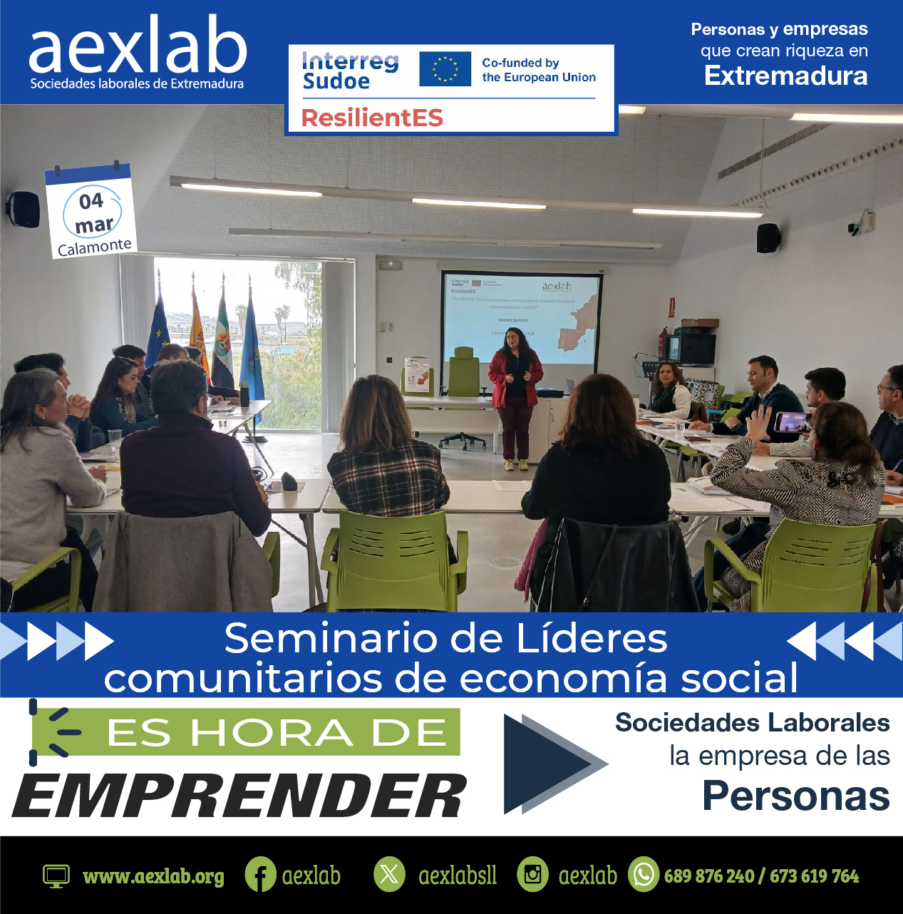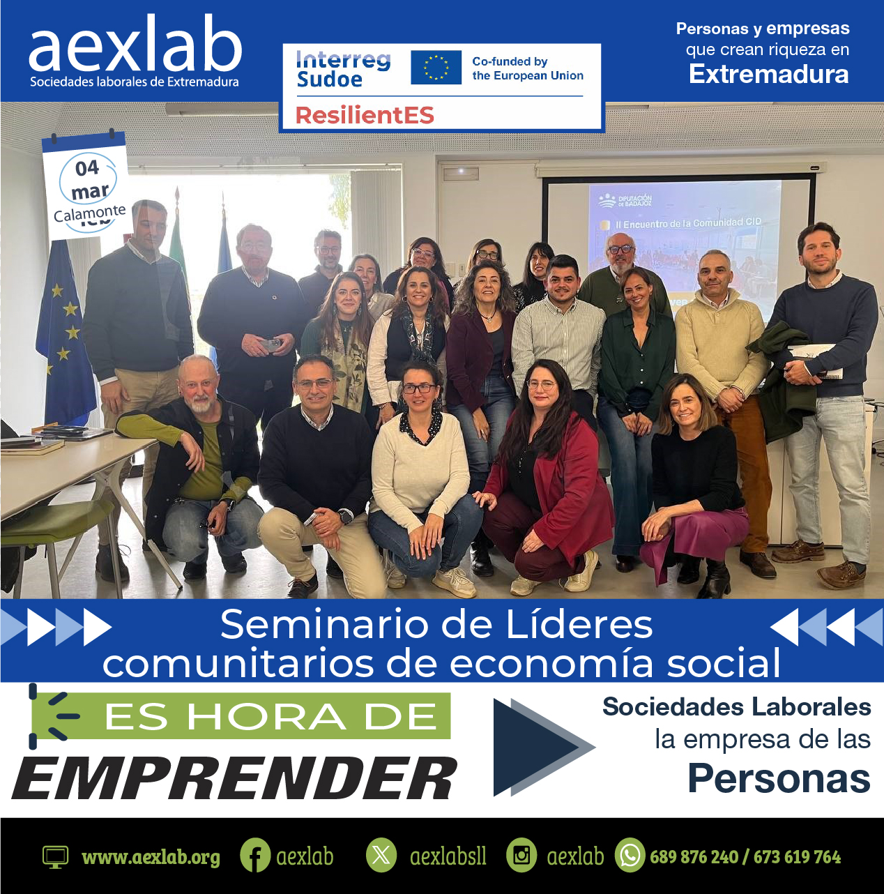 En la jornada de hoy, miércoles 4 de marzo de 2026, aexlab ha llevado a cabo una actividad estratégica en Calamonte, congregando a actores clave del territorio para el proyecto Europeo Sudoe resilientES.