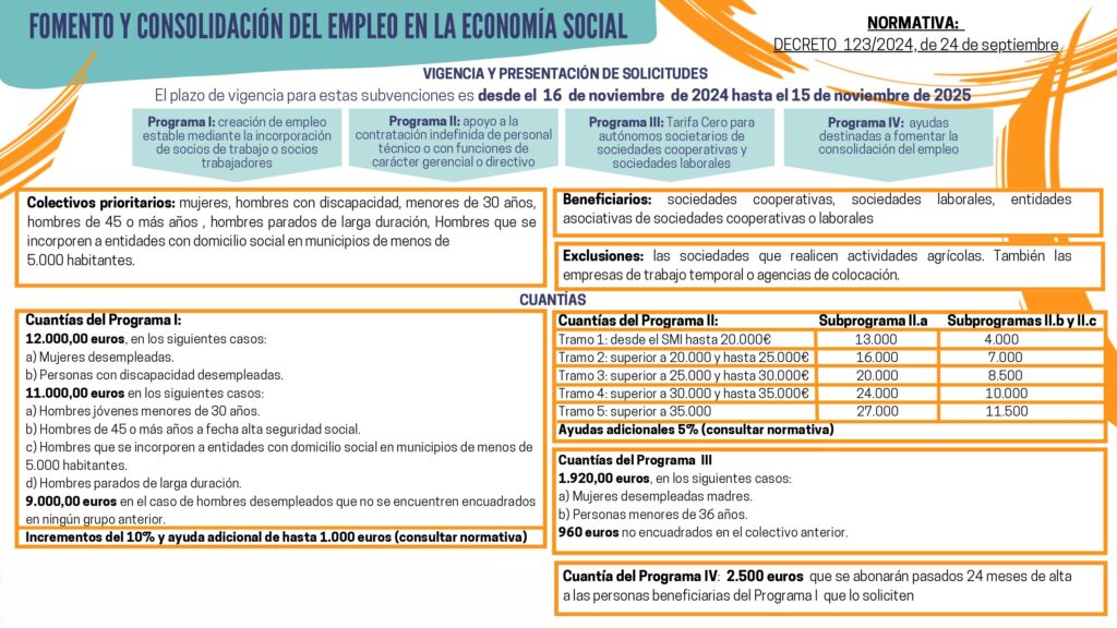 El Decreto 123/2024, publicado el 15 de noviembre de 2024, establece las bases para las subvenciones destinadas a fomentar y consolidar el empleo en la economía social en Extremadura.